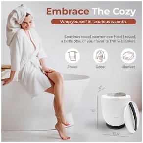 Eleve a experiência de spa e conforto no banheiro com nosso Aquecedor de Toalhas de Balde. Com uma capacidade espaçosa de até 12 litros, este aquecedor acomoda toalhas, cobertores, roupões de banho e pijamas, proporcionando um calor luxuoso e uniforme. O design inclui uma função de temporizador ajustável, permitindo personalizar o aquecimento conforme suas necessidades.