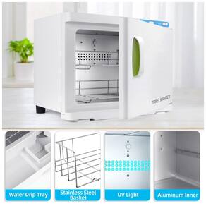 Aquecedor de toalhas quentes 2 em 1SOMENTE TOALHAS MOLHADAS A luz dentro do tanque para aquecimento e limpeza de toalhas faciais também pode ser usada para toalhas de banho, roupas íntimas, ferramentas para unhas, pedras de massagem e outras ferramentas de beleza, ideais para casa, spa, banheiro, salões de beleza, hotel, restaurante e cozinha. e confiável Aquecedor de toalhas com certificação EPA e CE para tratamentos faciais, é para uso diário. Bandeja removível embaixo para coletar a água gerada durante o processo de aquecimento da toalha e fácil de limpar. Apresenta uma janela de vidro transparente na porta para que você possa ver quantas toalhas há na unidade. Construção durávelDesign com câmara de alumínio aprimorada para melhor condução de calor, aquece completa e uniformemente as toalhas tradicionais e descartáveis, com controle de temperatura interno para evitar superaquecimento e fornecer calor padrão às toalhas. Prateleira de toalha de aço inoxidável para resistência à ferrugem e fácil de limpar. Poderoso sistema de aquecimentoVocê só precisa conectá lo à energia de 110V, colocar as toalhas molhadas e fechar a porta ligeiramente e pressionar o botão LIGAR, DESLIGAR e UV, a máquina de toalhas quentes pode ser aquecida rapidamente e uniformemente para aumentar média de 65 a 70 C. Em geral, aqueça por mais de meia hora. Se colocar muitas toalhas, aqueça por mais de 1 hora. Gabinete grande para aquecedor de toalhasEste aquecedor de toalhas de spa tem uma grande capacidade de 23 litros com rack de 2 camadas que pode zenar cerca de 50 60 peças de toalhas de tamanho normal. Com tamanho de 45 centímetros x 29 centímetros x 35 centímetros comprimento x largura x altura, é mais prático e eficiente e vai economizar mais tempo Marca: Não Informado