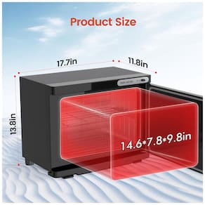 Uso Otimizado de Espaço: Com dimensões de 35 x 45 x 30 cm, o aquecedor de toalhas pode acomodar até 32 toalhas ou 48 toalhas de rosto. Suas dimensões internas são espaçosas o suficiente para armazenar mais toalhas ou toalhas faciais, tornando-o ideal para uso doméstico e em salões.