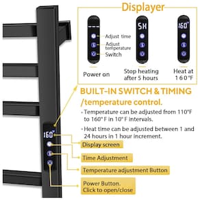 ESPAÇO APLICÁVEL: O aquecedor de toalhas preto fosco elétrico ajuda a reduzir a umidade nos ambientes enquanto mantém as toalhas com cheiro fresco. Ideal para secar rapidamente toalhas, roupões e outros itens, mantendo-os secos e confortáveis após o banho ou chuveiro.