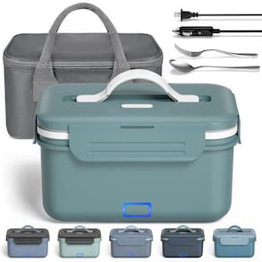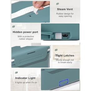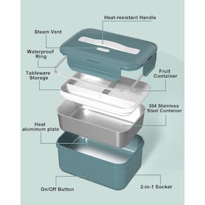 Com uma alça retrátil de borracha, é antiqueimadura e antiderrapante e fácil de transportar. Há um orifício de vapor na capa, com um design de arco circular e um recesso em um lado, que é fácil de abrir à mão. - Design de camada dupla – 2 recipientes empilháveis, o recipiente inferior de aço inoxidável pode conter 1,8 l de comida e a camada superior do recipiente de material PP contém três pequenos compartimentos (1 armazenamento de talheres e 2 compartimentos separados de armazenamento de frutas). O portátil lonchera eléctrica é perfeito para embalar uma variedade de alimentos em porções saudáveis, ajudando você a alcançar uma dieta equilibrada enquanto mantém o sabor autêntico da comida! - Propriedades mais fortes à prova de vazamento – a capa de lancheira elétrica tem travas em todos os quatro lados e sua área de cobertura é projetada para ser maior, tornando-a mais forte e não quebra facilmente. E o anel de vedação de borracha embutido pode garantir que a comida não vaze durante o transporte e mantenha a comida fresca! Não precisa se preocupar com derramamentos de alimentos, mesmo em um ambiente de carro instável! - Desfrute de comida quente e saudável! - Feito de material premium de qualidade alimentar, é o melhor recipiente térmico para embalar alimentos saudáveis. O revestimento externo tem forte resistência ao calor, mesmo que a temperatura interna atinja 100 graus, não estará quente! O aço inoxidável 304 para o tanque interno não tem odor e é durável, reutilizável e fácil de limpar! - Aquecedor de alimentos portátil 4 em 1 – está equipado com 2 adaptadores de energia: um adaptador interno doméstico de 110V/220V, um carro de 12V/24V e um adaptador de caminhão. Conecte a energia para aquecer a comida, pode ser usada em casa/escritório/carro/caminhão. Permite que você desfrute de refeições frescas e quentes, esteja trabalhando ao ar livre ou em ambientes fechados! Também é um presente de elefante branco ideal e emocionante para familiares e amigos! - Alta potência de 100 W e aquecimento rápido: as lancheiras elétricas para adultos adotam um sistema de aquecimento PTC, com temperatura constante e função de ciclo de baixo consumo de calor, pode manter os alimentos aquecidos uniformemente e também bloquear a umidade dos alimentos. Leva apenas 20 a 30 minutos para aquecer rapidamente até a temperatura ideal, desfrute de uma refeição caseira fresca! Elimine a fadiga do seu dia!