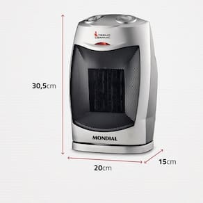 Características: Potência: 1500W Consumo de energia: 1,5Kw/h Comprimento do cabo: 1m 2 Níveis de aquecimento Resistencia de cerâmica Aquecimento com baixo ruido Desligamento automático Grade de segurança Com alça para transporte Luz Indicadora Inmetro: BRA23/00339