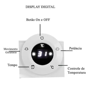 Equipado com uma tela display digital , o aquecedor portátil fornece exibição intuitiva da temperatura atual e outros status operacionais, permitindo monitorar e ajustar facilmente conforme necessário. O aquecedor por ser controlado pelo painel ou pelo controle remoto.