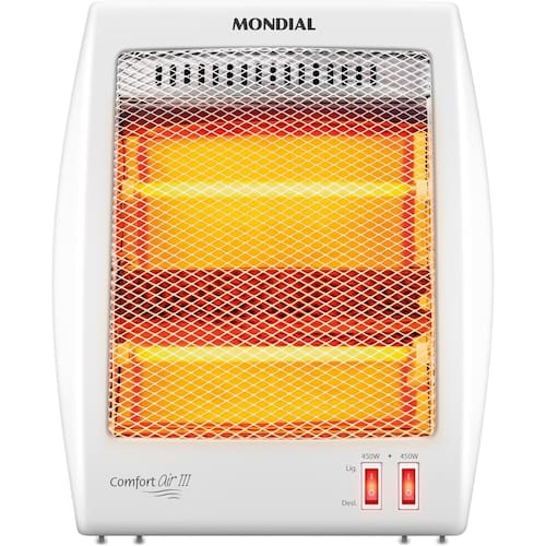 2 NÍVEIS DE TEMPERATURA: O aquecedor Mondial vem com 2 opções de potência: 450W e 900W. Escolha de acordo com sua preferência!