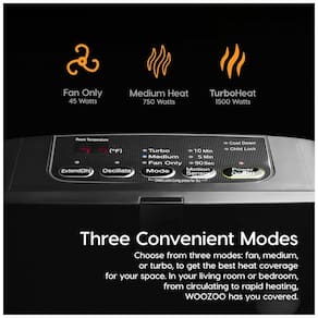 TRÊS MODOS DE VENTILAÇÃO: Modos de Ventilador/Médio/Turbo. Desde a circulação do ar até o aquecimento rápido do ambiente; três modos de ventilação disponíveis ajudam a melhorar seu ambiente, seja na sala de estar ou no quarto.