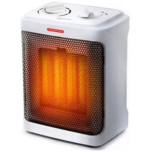 Aquecimento super rápido Este aquecedor elétrico é projetado com elementos de aquecimento cerâmicos avançados que fornecem aquecimento mais rápido e com maior eficiência energética do que um aquecedor elétrico tradicional. Pequeno e poderoso, este é o aquecedor de ambiente perfeito para uso no quarto, escritório e sob a mesa. Aquecimento poderoso Este pequeno aquecedor possui modos de energia de 750 W Baixa e 1500 W Alta, bem como um modo de apenas ventilador suave. Reduza suas contas de energia usando este aquecedor de ambiente com eficiência energética para aquecer quartos individuais, em vez de aquecer dispendiosamente toda a sua casa. Termostato ajustável Este aquecedor portátil com termostato possui um controle de termostato fácil de usar e totalmente ajustável que monitora a temperatura do ar ao redor para obter uma eficiência de aquecimento ideal. Recursos de segurança avançados A proteção contra superaquecimento integrada e um interruptor anti tombamento aprimorado garantem que o mini aquecedor desligue instantaneamente em qualquer situação insegura, proporcionando total tranquilidade
