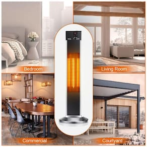 Aquecimento amplo para grandes espaços: Comparado a outros aquecedores de ambiente para uso interno, o aquecedor de pátio tem 80 cm de altura, permitindo que o aquecedor elétrico aqueça um espaço de 46 m² a mais. Com tubos de fibra de carbono revestidos a ouro, este aquecedor infravermelho é tanto um aquecedor interno para sala de estar quanto externo para pátio, com alta precisão de aquecimento, fornecendo calor diretamente às pessoas e criando uma zona confortável e aquecida. Você pode até usar o aquecedor de ambiente como aquecedor de garagem.