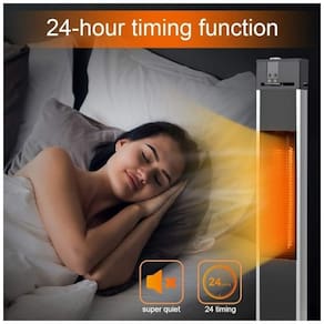 Controle remoto e temporização 24 horas: Aquecedor externo Trustech com controle remoto. Você pode escolher facilmente diferentes potências de aquecimento sem sair do sofá ou da cama. Os aquecedores para uso interno em ambientes amplos, que emitem um brilho âmbar suave, permitem que você desfrute de um calor aconchegante. Além disso, esses aquecedores de pátio são super silenciosos, ideais para um sono tranquilo. Com um temporizador de 24 horas, você pode programar o desligamento automático antes de dormir e permanecer em um ambiente confortável, aquecido e silencioso a noite toda.