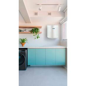 COMPACTO E FUNCIONAL: O aquecedor deve ser instalado na parede, uma combinação perfeita que se adapta a qualquer ambiente, otimizando espaços seja no banheiro, cozinha, lavanderia ou até mesmo dentro de móveis planejados.