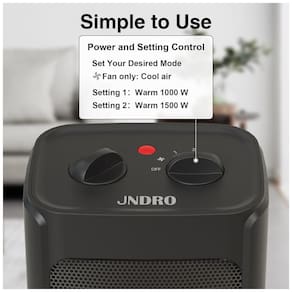 O Aquecedor e Ventilador JNDRO é um 2 em 1, oferecendo dois ajustes de calor - 1500W ou 750W - além de uma função de ventilador para ser utilizado no inverno e no verão. Com diversas medidas de segurança, como proteção contra superaquecimento e desligamento automático em caso de tombamento, este aquecedor portátil é feito de materiais resistentes a chamas. Compacto e leve, com alça integrada, é ideal para usar em escritórios, quartos e mesas. Silencioso e eficiente, aquece rapidamente espaços.