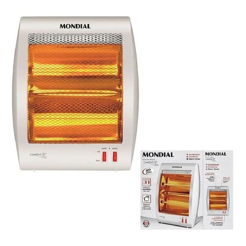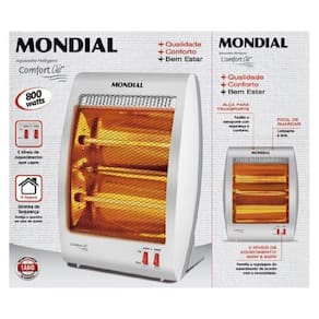 CARACTERÍSTICAS: - Com o Aquecedor Comfort Air A-09 da Mondial você passa os dias mais frios do ano de forma quentinha e acolhedora, em sua casa, com total tranquilidade. Com ele no lar, não será necessário se encher de camadas de roupas, podendo ficar vestido como se estivesse uma temperatura mais amena. Portátil e bem prático, ele possui 3 lâmpadas de halógeno. - O aquecedor elétrico da Mondial possui desligamento automático e dois níveis de aquecimento, sendo um com 400W e outro com 800W de potência. Destaque para a alça, que facilita o transporte para qualquer cômodo que queira levá-lo - Mais conforto para você e sua família.