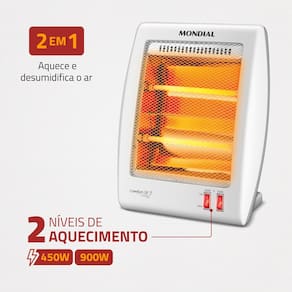 2 NÍVEIS DE TEMPERATURA: O aquecedor Mondial vem com 2 opções de potência: 450W e 900W. Escolha de acordo com sua preferência!