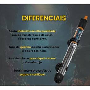 Com aquecedor fabricado com resistência de puro níquel-cromo que não enferruja. Possibilitando rápida transferência de calor com tubo de quartzo de alta performance. É completamente submersível e apresenta duplo isolamento, o que garante uma maior vida útil.