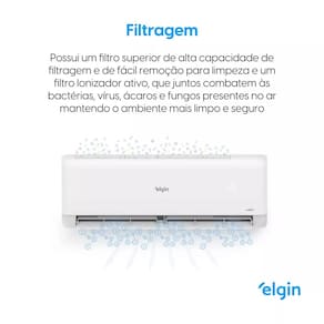 A instalação exige tubulação com bitolas de 1/4" (líquido) e 3/8" (gás), com comprimento máximo recomendado de 15 metros. A corrente nominal pode variar conforme a operação, mas gira em torno de 8,4 A. O produto conta com 3 anos de garantia total e até 10 anos para o compressor, desde que a instalação seja feita por empresa credenciada Elgin. É uma solução completa para quem busca eficiência, conforto térmico e economia em um único equipamento.