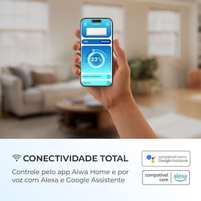 Com Wi-Fi integrado, você controla todas as funções pelo aplicativo Aiwa Home ou por comandos de voz com Alexa e Google Assistente, trazendo conectividade e praticidade ao dia a dia. Durável e resistente, conta com gabinete metálico, serpentina de cobre e revestimento Blue Fin, que proporcionam maior proteção contra ferrugem, maresia e desgaste, além de 10 anos de garantia no compressor.