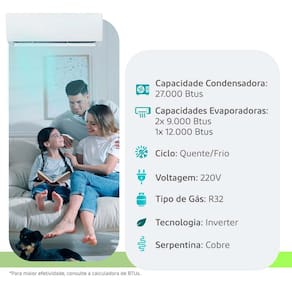 Ar-condicionado Multi Split Inverter Elgin Hw R-32 Wi-Fi 27000 Btus (2x Evap 9.000 e 1 Evap 12.000) Quente/frio 220V Monofásico O Ar-Condicionado Tri Split Inverter 27.000 BTU Elgin é um avanço notável no campo da climatização, unindo eficiência energética a um design compacto e inovador. Este sistema não apenas assegura o máximo conforto, mas também redefine a otimização de espaço ao permitir a climatização de três ambientes com apenas uma unidade externa. Apresentando uma série de características distintas, este equipamento é a escolha inteligente para quem busca eficiência e sustentabilidade. Controle Total na Palma da Mão A conectividade Wi-Fi coloca o controle do ar-condicionado literalmente na palma da sua mão. Através do aplicativo Elgin Smart, você pode ajustar as configurações remotamente, garantindo um ambiente confortável antes mesmo de chegar em casa. Essa funcionalidade oferece uma praticidade sem igual, permitindo ajustes personalizados para atender às suas necessidades específicas. Fluido R-32 Sustentável O uso do fluido refrigerante R-32 reflete o compromisso da Elgin com a eficiência e a sustentabilidade ambiental. Além de proporcionar uma excelente troca de calor, o R-32 é um gás amigo do meio ambiente, contribuindo para uma climatização responsável. Com características como zero impacto na camada de ozônio, eficiência energética aprimorada, reutilização e baixo índice de aquecimento global, o R-32 destaca-se como uma escolha eco-friendly. Garantia de 3 Anos. Para usufruir desta garantia, é essencial que a instalação seja realizada por uma empresa credenciada pela Elgin, conforme orientações presentes nos manuais e certificados. Essa medida garante não apenas a validade da garantia, mas também a máxima eficiência do equipamento. Tecnologia Silenciosa para Seu Conforto O desenvolvimento do Ar-Condicionado Tri Split Inverter foi meticulosamente planejado para proporcionar um ambiente silencioso e agradável. Materiais especiais e camadas de proteção foram empregados para reduzir as vibrações, enquanto hélices e ventiladores foram projetados para minimizar o ruído. O resultado é um ambiente tranquilo e confortável, onde você pode desfrutar do máximo de bem-estar. Filtros de Nylon e Carvão Ativado Essenciais para elevar a qualidade do ar, os filtros de Nylon e Carvão Ativado garantem um ambiente mais saudável e agradável. Altamente eficazes na eliminação de odores provenientes, gordura e odores corporais, esses filtros proporcionam um ar fresco e puro em todos os momentos. Serpentina de Cobre e Aletas Douradas Em regiões sujeitas à maresia e corrosão, a serpentina de cobre e aletas douradas garantem uma maior resistência e durabilidade do equipamento. Essa combinação de materiais assegura um funcionamento confiável mesmo em condições ambientais adversas, proporcionando tranquilidade e segurança ao usuário. Display Invisível Para um Sono Tranquilo A possibilidade de escolher entre um display iluminado ou invisível oferece uma experiência personalizada de acordo com suas preferências. Com o display invisível, é possível desfrutar de noites tranquilas e sem interferências luminosas, garantindo um sono profundo e revigorante. Eficiência Energética com a Tecnologia Inverter A tecnologia Inverter representa uma escolha inteligente para quem busca economia de energia e sustentabilidade ambiental. Além de aquecer rapidamente e manter a temperatura estável, essa tecnologia reduz significativamente os gastos com eletricidade, tornando-se uma opção econômica e sustentável para o usuário. Com o Ar-Condicionado Multi Split Inverter Elgin 27000 BTUs, você desfruta do máximo de conforto e eficiência, sem comprometer o meio ambiente.