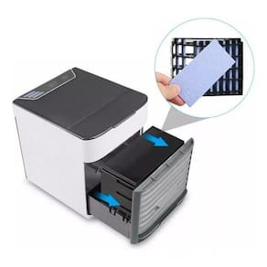 Especificações: Marca: Ultra; Modelo: Air Cooler; Capacidade do tanque de água: 370 ml; Criar uma zona de resfriamento pessoal: Sim; Resfria a temperatura ambiente pessoal até 6-8 graus; Silencioso: Sim; Ventos velocidade: 3 modos Alto/Médio/Baixo Funcionamento: Até 6 ate 8 horas; Baixo consumo: Energia; Modo de usar: Basta adicionar água e ligá-lo; Desligamento automático: Quando acaba a agua; Potência: 10 w; Dimensões: 17,2 cm X 14,5 cm x 16,5 cm
