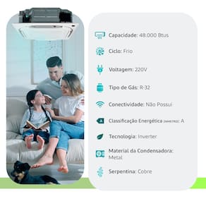 Ao escolher o Ar-condicionado Split Cassete Inverter Plus Elgin 48000 Btus R-32 Frio 220V Monofásico 45KVFI48C2NA, você está investindo em muito mais do que apenas um sistema de climatização. Você está investindo em conforto, eficiência e durabilidade, garantindo um ambiente mais agradável e refrescante para você, sua família ou seus colaboradores.