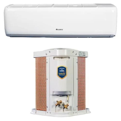 Características: Marca: Gree Modelo: G-Top Tipo: Split Capacidade: 24.000 BTUs Ciclo: Frio Modos de operação: Refrigera, ventila e desumidifica Compressor: Inverter Gás refrigerante: R-32 Serpentina: Cobre Filtro: Sim Proteção anticorrosão: Sim Swing: Sim Timer: Sim Turbo: Sim Sleep: Sim Wi-Fi: Sim Comando de voz: Sim (Necessário a instalação do aplicativo Google Home no smartphone) Desumidificação: Sim Modo Automático: Sim Modo Refrigeração: Sim Modo Aquecimento: Não Modo Desumidificação: Sim Modo Ventilação: Sim Modo dormir: Sim Swing vertical (oscilação da aleta): Sim Ventilação automática: Sim Modo silêncio: Sim Modo I Feel: Sim Função anti mofo: Sim Filtro múltiplo: Sim Auto limpeza: Sim Temporizador: Sim Reinicio automático: Sim Modo turbo: Sim Relógio: Sim Temperatura: Sim Início Suave: Sim Auto diagnóstico: Sim Bloqueio: Sim Degelo inteligente: Não Eficiência energética: A Potência: 2210W Consumo: 6,63 Wh Frequência: 60 Hz Inmetro: Sim