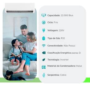 Ar Condicionado Split Hi Wall - Inverter R-32 - Lite - Midea - 22.000 BTUs - Frio - 220V Monofásico Ar-Condicionado Split Midea AirVolution Lite: Conforto e Durabilidade para seu Lar O Ar-Condicionado Split AirVolution Lite Midea é a escolha ideal para quem busca o equilíbrio perfeito entre desempenho essencial e praticidade tecnológica. Com um design minimalista em acabamento branco fosco e LED invisível, ele se integra com sofisticação a qualquer estilo de decoração, oferecendo climatização eficiente sem complicações. Tecnologia de Ponta e Durabilidade Avançada (Sistema Prime Guard) Desenvolvido para enfrentar as condições mais adversas, o AirVolution Lite conta com o exclusivo sistema Prime Guard. Este conjunto de tecnologias garante uma vida útil prolongada ao aparelho através de: Tecnologia Gold Fin®: Proteção extra na unidade externa contra oxidação e corrosão, essencial para garantir resistência inclusive em regiões litorâneas. Placa Eletrônica Blindada: Resistente à umidade e corrosão, aumentando significativamente a durabilidade dos componentes internos. Cura UV: A placa completa é coberta por uma resina com cura em luz UV para proteção avançada contra contaminantes. Operação em Ampla Faixa de Tensão: Funciona de forma estável entre 151V e 264V, ajustando a frequência do compressor para resistir a variações de voltagem. Conforto Térmico e Funções Inteligentes Para proporcionar o clima perfeito, o Midea AirVolution Lite oferece funções que priorizam o seu bem-estar: Função Turbo: Alcance a temperatura desejada muito mais rápido com o resfriamento acelerado. Brisa Indireta: Ajusta o fluxo de ar para evitar jatos diretos, proporcionando um conforto térmico suave. Função Siga-me: O sensor do controle remoto (com alcance de até 8 metros) informa ao aparelho onde você está, direcionando o fluxo de ar para o seu entorno. Função LED: Perfeita para noites de sono tranquilas, desativa os sinais sonoros e apaga o display da unidade interna. Autolimpeza: Possui 4 etapas de limpeza interna para garantir que o aparelho permaneça livre de sujeiras e impurezas. Versatilidade e Instalação Simplificada Com uma unidade externa compacta que ocupa até 35% menos espaço em comparação aos modelos convencionais, este ar-condicionado é ideal para apartamentos e áreas com limitações de tamanho. Além disso, a flexibilidade é garantida pela possibilidade de instalação a apenas 5 cm de distância do teto.