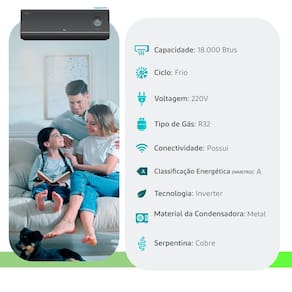 Ar Condicionado Split Hi Wall - Inverter R-32 - TCL - Freshin 3.0 - 18.000 BTUs - Frio - 220V Ar-Condicionado TCL FreshIN 3.0 Inverter: Ar Puro e Tecnologia Inteligente O TCL FreshIN 3.0 redefine o conceito de climatização ao unir conforto térmico, eficiência energética e uma preocupação inédita com a saúde respiratória. Disponível nas cores branca ou preta, este modelo Inverter adapta-se perfeitamente a qualquer projeto de interiores, oferecendo sofisticação e tecnologia de ponta. Diferenciais de Saúde: O Ar que Você Respira O grande destaque do FreshIN 3.0 é o seu Exclusivo Sistema de Renovação de Ar. Diferente dos aparelhos comuns, ele é capaz de renovar o ar do ambiente com uma vazão de até 30m³/h, mantendo níveis ótimos de oxigênio e umidade. Filtro Quadripuri: Um sistema de quatro camadas que inclui filtro HD (partículas e poeira), filtro Silver Ion (bactérias), filtro preliminar e o filtro HEPA, que filtra o ar vindo do exterior. Monitoramento em Tempo Real: O display da unidade interna permite acompanhar a qualidade do ar através de indicadores coloridos: Azul (Bom), Amarelo (Moderado) e Laranja (Ruim) Otimização da Umidade: Tecnologia desenvolvida para evitar o ressecamento do nariz e da garganta, garantindo bem-estar prolongado. Remoção de Odores: Elimina eficazmente cheiros desagradáveis, deixando o ambiente sempre refrescante. Tecnologia e Economia com Inteligência Artificial Equipado com a tecnologia AI Eco, o FreshIN 3.0 utiliza algoritmos para analisar as flutuações de temperatura e ajustar o compressor de forma proativa. Isso evita o resfriamento excessivo e garante a Classificação A do Inmetro em eficiência energética. Smart Learning: Após 10 dias de uso, o aparelho aprende suas preferências e ajusta a temperatura automaticamente. Controle Total: Gerencie o consumo de energia pelo aplicativo TCL HOME ou utilize comandos de voz via Alexa e Google Home. Comando de Voz Offline: Inovação que permite controlar mais de mil funções por voz, mesmo sem conexão com a internet. Conforto Acústico e Durabilidade Função Brisa: Palhetas com microfuros que distribuem o ar de forma suave, eliminando o incômodo jato de ar direto na pele Silêncio Absoluto: Operação ultra silenciosa, alcançando níveis tão baixos quanto 16dB, ideal para noites de sono tranquilas. Resistência Extrema: Projetado para operar mesmo em temperaturas externas de até 60°C, com serpentina em cobre e proteção anticorrosão Gold Fin para maior vida útil.