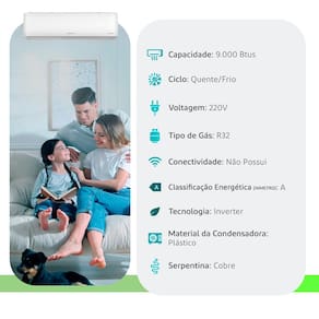 Ar Condicionado Split Hi Wall - Inverter R-32 - Zen - Agratto - 9.000 BTUs - Quente/Frio - 220V Monofásico Ar Condicionado Agratto Zen Inverter: Tecnologia, Economia e Sustentabilidade O novo Ar Condicionado Agratto Zen Inverter chega ao mercado como a solução definitiva para quem busca o equilíbrio perfeito entre conforto térmico e eficiência energética. Projetado com tecnologia de ponta, este modelo é 100% Inverter, garantindo um ambiente agradável com o máximo de economia e respeito ao meio ambiente. Destaques de Performance e Economia O Zen Inverter foi desenvolvido para superar as expectativas dos consumidores mais exigentes. Equipado com o Gás Ecológico R32, ele não apenas possui zero impacto na camada de ozônio, como também apresenta um baixo potencial de aquecimento atmosférico, sendo energeticamente mais eficiente que os modelos tradicionais. Selo Procel Classe A: Certificado com a nota máxima em economia de acordo com o novo IDRS (Índice de Desempanho de Resfriamento Sazonal). Economia Extrema: Tecnologia que proporciona até 70% mais economia em comparação aos splits convencionais. Eficiência Energética: Registra um índice de 7,00 IDRS, consolidando-se como um dos mais econômicos da categoria. Tecnologia Inverter de Alta Performance Diferente dos aparelhos comuns, o sistema 100% Inverter da Agratto mantém a temperatura estável, evitando picos de consumo. Resfriamento Rápido: Alcança a temperatura desejada em poucos minutos. Silêncio Absoluto: Graças à baixa rotação do compressor, o funcionamento é extremamente silencioso, ideal para quartos e escritórios. Conforto Térmico: Proporciona uma sensação constante de bem-estar, sem oscilações térmicas. Durabilidade e Design Inteligente A linha conta com a robusta Condensadora Top Discharge, com grade superior desenhada para uma exaustão otimizada e dissipação de calor mais eficaz. Serpentinas em Cobre: 100% cobre com camada Blue Fin, que previne a proliferação de bactérias e garante até 30% mais eficiência e resistência contra corrosão. Design Compacto: Otimização de espaço e facilidade de instalação para qualquer ambiente. Placas PCB's Avançadas: Componentes internos que otimizam o desempenho e a inteligência do aparelho. Especificações Técnicas (Linha Completa) Disponível em diversas capacidades para atender desde pequenos quartos a grandes salas: Capacidades: 9.000, 12.000, 18.000 e 24.000 BTUs. Dimensões (CxLxA): 9K e 12K: 370 x 490 x 540mm. 18K e 24K: 400 x 470 x 570mm. Visor Backlight: Painel moderno e discreto que facilita a visualização da temperatura. Fluxo de Ar: Sistema de ventilação com distribuição em quatro direções.