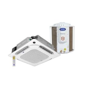 Ar Condicionado Split Inverter Cassete 4 Vias Carrier Connect 48000 BTU/h Quente e Frio Monofásico 38CQVE48515MC – 220 VoltsO ar-condicionado Carrier oferece tecnologia de ponta para proporcionar máximo conforto e praticidade. Com conectividade Wi-Fi nativa, a unidade pode ser controlada à distância pelo aplicativo Carrier Air Conditioner, além de ser compatível com assistentes de voz Google Assistant e Alexa, permitindo comandos intuitivos para ajustes rápidos e eficientes.A inovadora Função Breezeless suaviza o fluxo de ar, tornando o ambiente ainda mais agradável, enquanto a seleção individual dos defletores de ar possibilita um controle personalizado da ventilação, permitindo abrir ou fechar cada um dos quatro defletores de saída de ar conforme a necessidade.Para garantir um funcionamento eficiente e sem transtornos, o aparelho conta com bomba de dreno incorporada, evitando o acúmulo de água e gotejamentos. Além disso, o ventilador interno de alta tecnologia proporciona uma operação silenciosa, ideal para manter o ambiente confortável sem ruídos incômodos.A praticidade também está presente no painel frontal removível, que facilita a manutenção sem necessidade de retirar o produto do teto ou do forro. Com quatro velocidades de ventilação (baixa, média, alta e automática) e quatro modos de funcionamento (resfriar, desumidificar, ventilar e aquecer), o aparelho se adapta perfeitamente a qualquer necessidade climática.A função Oscilar/Swing distribui o ar de forma uniforme pelo ambiente, e o temporizador ON/OFF permite programar horários para ligar ou desligar automaticamente. O controle remoto com backlight facilita a visualização no escuro, enquanto o display digital na unidade interna garante leitura rápida das configurações selecionadas.Para sua tranquilidade, o ar-condicionado conta com garantia de 3 anos contra defeitos de fabricação, desde que instalado por uma empresa credenciada do grupo Midea Carrier ou por um técnico certificado através do aplicativo Midea Play.Carrier: Tecnologia, conforto e eficiência para o seu ambiente!Imagens meramente ilustrativas Ean: 7898945167468