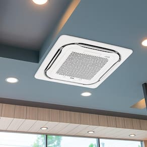 Climatização imediata com desempenho uniforme ideal para espaços com grande fluxo de pessoas.