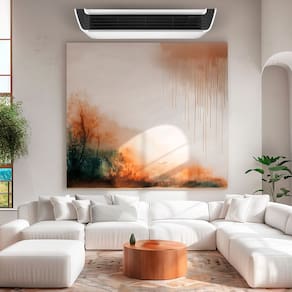 Ar Condicionado Split Teto Inverter - R-32 - LG - 48.000 BTUs - 220V Monofásico Climatização Comercial Leve LG: Eficiência, Tecnologia e Design A Linha Comercial Leve LG oferece soluções de climatização de alto desempenho para ambientes comerciais, combinando tecnologia avançada, sustentabilidade e um design sofisticado. Tecnologia Smart Inverter e Sustentabilidade A linha utiliza a tecnologia Smart Inverter, que proporciona uma operação mais econômica, permitindo uma economia de energia de até 70% em comparação com modelos convencionais. A LG prioriza a sustentabilidade utilizando o refrigerante R32, que é: Ecológico e Eficiente. Proporciona alta eficiência energética com uma quantidade menor de refrigerante. Possui baixo Potencial de Aquecimento Global (GWP) de 632, sendo uma opção mais sustentável em comparação com o refrigerante tradicional R410A (GWP de $2.088$). Conectividade e Controle Inteligente: Módulo Wi-Fi Incluído, Instalação Pelo Cliente Os equipamentos da linha simplificam a rotina com o conceito "Inteligente é simplificar sua rotina". Este aparelho possui compatibilidade Wi-Fi e com a plataforma LG ThinQ™. O módulo de conectividade Wi-Fi necessário acompanha o produto, mas sua instalação física deve ser realizada pelo cliente para habilitar as funções inteligentes. A conectividade permite: Monitorar o consumo de energia. Controlar o aparelho de qualquer lugar e a qualquer momento. Compatibilidade com assistentes de voz, como Ok Google e Alexa. Durabilidade, Instalação e Controle A durabilidade é garantida na condensadora pelas Aletas Resistentes à Corrosão (Black Fin): O revestimento com resina epóxi fornece proteção contra corrosão por poluição do ar e contaminação salina. O filme hidrofílico minimiza a umidade na serpentina e impede o acúmulo de água no trocador de calor, aumentando a resistência à corrosão. A instalação é flexível e mais prática: Comprimento total máximo da tubulação de até 50 metros. Desnível máximo entre condensadora e evaporadora de até 30 metros. O controle é simplificado com a função Controle em Grupo, que permite controlar até 16 unidades internas por meio de um único controle.