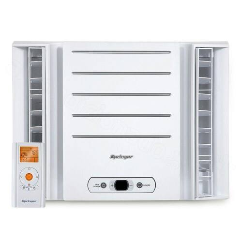 Ar Condicionado Janela Springer Duo Eletronico 10000 BTUs Quente e Frio 220v Baixo consumo de energia, baixíssimo nível de ruído. Baixo nível de ruídoA melhor eficiência do mercado3 velocidades de ventilaçãoFunção Filter Check*Função Energy Saver*Gabinete deslizante RENOVA O AR-Ambiente mais saudável.FUNÇÃO SLEEP*-Programa para desligamento automático do produto com a qualidade SpringerControle remoto com as seguintes funções:Timer: determina o tempo de funcionamento do produto.Funções turbo: refrigera ou aquece o ambiente mais rapidamente.Sleep: programa para desligamento automático do produto.Auto: ajuste automático de temperatura.Compressor rotativo: garantia de economia de energia, eficiência e operação silenciosa;Capacidades 18.000 e 30.000 BTU/h com melhor eficiência do mercado; Sistema Dreno seco Dupla Saída de ar