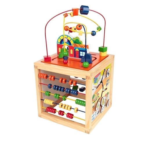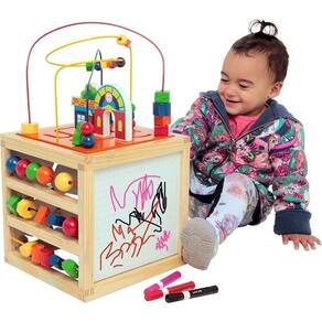 O Aramado Casinha é um brinquedo interativo com 5 diferentes atividades que irão prender a atenção da criançada.Brinquedo confeccionado em madeira, M.D.F. e arame. Em forma de Cubo com a parte superior e laterias compostas por 5 atividades: Aramado casinha: composto por 03 circuitos e 21 peças de formas variadas e coloridas + 02 carrinhos coloridos. Formas e Cores: composto por 3 "linhas" de arame e 15 peças coloridas. Ábaco: composto por 5 "linhas" de arame e 50 bolinhas coloridas. Quadrinho rabiscos de iniciação: Confeccionado em M.D.F. Padrão BP "Dots", com ilustrações de pontinhos e Carrinhos e caminhos: Composto por 4 peças para seguir o percurso (Ex:supermercado tem a Van de entraga, a fábrica tem o caminhão...). Brinquedo pintado e serigrafado com tinta em policromia ultravioleta atóxica, peças e arames pintados com tinta atóxica colorida. Medida do produto fechado: 27 x 27 x 27 cm. Medida aproximada do produto montado: 27 x 27 x 50 cm. Embalagem: Caixa de papel microondulado ilustrado medindo 29 x 29 x 28 cm. Lacrada com película de P.V.C. encolhível.Idade: A partir de 3 anosMaterial: M.D.F.,madeira e arame