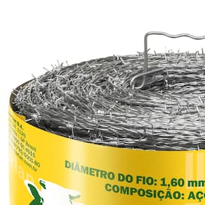 O arame farpado Nelore Morlan é fabricado com aço zincado para proteção contra a corrosão e possui classificação de resistência mínima de 250 kgf.