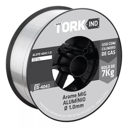 Arame Solda Mig 1,0mm 7kg Alumínio com Gás Super Tork Características Este tipo de arame é fabricado para solda que haja necessidade de utilizar gás de proteção externo. Arame de alumínio para soldagem em todas as posições em um único passe, ou multipasse. Apresenta baixo índice de respingos e ampla faixa de parâmetros operacionais, além de proporcionar uma fácil remoção de escória. O arame de solda de alumínio contém 5% de silício, o qual confere características excelentes de fluidez e , disponível em carretéis para aplicações no processo MIG de soldagem. - Soldagem extremamente macia e produtiva; - Excelente soldabilidade, baixos níveis de respingo com ótimo acabamento. - Proporciona maior fluidez na poça de fusão, promovendo melhor rendimento na solda. APLICAÇÕES: - Recipientes com pressão; - Tubulações; - Blocos e cabeçotes; - Preenchimentos; - Tanques e embarcações; - Reparação automotiva; ATENÇÃO: Não é indicado para aplicar em peças que serão anodizadas. Especificações Marca: Super Tork Modelo: AL970-4043-1.0 Diâmetro: 1,0mm Diâmetro do Rolo: 270mm Rolo: 7 Kg Marca: Não Informado