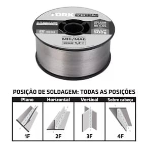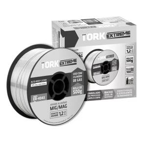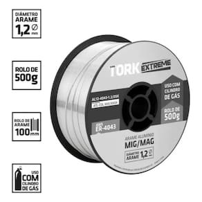 Arame solda mig alumínio para uso com gás 1,2mm super torkbr / br / Características:br / br / O arame tork é destinado a soldagem mig em alumínio e suas ligas em peças de equipamentos para processamento e manuseio de alimentos,botes para navegação, silos, carrocerias de ônibus e furgões, utensílios domésticos, tanques e tambores, tubos, conexões, ferroviários, vagões, indicado para industria química, petroquímica, aeronáutica,br / br / Características principais:br / br / - o arame sólido contem liga de alumínio com 5% de silício para soldagem pelo processo mig;br / - soldagem extremamente macia e produtiva;br / - atende a norma aws a.5-10 er 4043;br / - foi produzido para soldar ligas similares, alumínio laminado, alumínio fundido e alumínio forjado;br / - apresenta boa soldabilidade, fluidez e boa , sem respingos e ótimo acabamento;br / - enrolado no processo capa a capa;br / - certificação de composição química e de qualidade;br / - embalagem resistente a umidade;br / br / Especificações:br / br / - marca: super torkbr / - modelo: al9054043br / - diâmetro: 1,2mmbr / - classificação: er4043br / - norma aws: a.5-10br / - tipo: alsibr / - gás para utilização: argônio puro ou hélio 5 % argôniobr / - diâmetro do rolo: 100 mmbr / - quantidade: 3 rolosbr / - peso: 500 g cada rolo br / br / : 90 dias defeitos de fabricação br / Marca: Não Informado