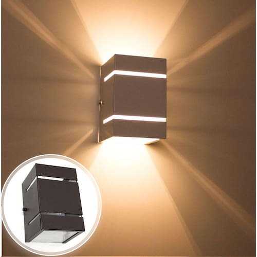 Arandela com efeito de 2 fachos e frisos, cria um lindo efeito luminoso, extremamente resistente a sol, chuva e maresia.Produzida em alumínio não enferruja nunca. Ideal para ser usada em áreas externas e internas, fácil instalação. Sua pintura eletrostática confere extrema proteção e durabilidade.