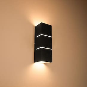 É muito prática e ideal para diversos tipos de iluminação. Com seu design moderno e diferenciado com efeito na parede conforme na foto, é usada em áreas internas ou externas como: halls, garagens, salas, muros.