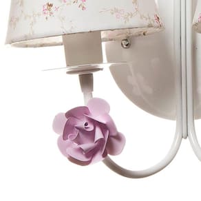 Ter uma iluminação indireta, além da central, deixa o quartinho do bebê mais versátil. Aposte no charme luminotécnico que esta arandela pode propocionar e impressione com este item de decoração encantador. Dados TécnicosArandela para 2 lâmpadas em alumínio com pintura epóxi, decorada com 2 florzinhas de metal e cúpulas forradas com tecido. Lâmpadas SuportadasEconômicas / Led: Qualquer LâmpadaIncandescente amarela : Até 60w por Soquete MedidasLargura: 30 cmAltura: 25 cm