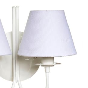 Ter uma iluminação indireta, além da central, deixa o quartinho do bebê mais versátil. Aposte no charme luminotécnico que esta arandela pode propocionar e impressione com este item de decoração encantador. Dados TécnicosArandela para 2 lâmpadas em alumínio com pintura epóxi, decorada com 2 florzinhas de metal e cúpulas forradas com tecido. Lâmpadas SuportadasEconômicas / Led: Qualquer LâmpadaIncandescente amarela : Até 60w por Soquete MedidasLargura: 30 cmAltura: 25 cm