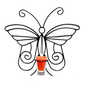 Arandela Borboleta Fina 30 cm Acompanha 1 vela no copinho na cor laranja Produtos da marca Velitas. Somos uma fábrica, de velas e ferros decorativos, desde de 1984 no mercado. Arandela: Peça em ferro com pintura eletrostática, que garante uma maior resistência e durabilidade em comparação com peças esmaltadas ou com pintura spray. Pintura marrom escura, quase preta, com minúsculos pontos pretos e dourados. A pintura dá um efeito especial a peça. Peça produzida de forma artesanal. Medidas: Altura: 26 cm Largura: 30 cm profundidade: 8 cm Peça desenhada para uso na parede, não há risco de a chama estragar a pintura se forem usadas somente velas de parafina pura. Para paredes de tijolo, recomendamos o uso de bucha com parafuso, o mais seguro é o parafuso em L, ele garante uma melhor fixação. Copinho de vidro: O copo de vidro é da Nadir Figueiredo, além de ser resistente ele é facilmente encontrado em vários lugares no Brasil. Medidas do copo: altura: 7 cm diâmetro superior boca : 5,2 cm diâmetro inferior base : 3,5 cm Velas: Velas de parafina pura Petrobras, contêm apenas corante nas velas coloridas. A vela pura garante uma maior durabilidade, não produz fumaça preta que possa sujar a parede ou criar um aspecto desagradável, e também possui um cheiro suave e natural da parafina. Nossas velas no copinho foram projetadas para fácil reposição já que são removíveis, o produto acompanha indicações de uso para facilitar a limpeza do copo após a utilização. Duração da vela: Aproximadamente 12 horas, o tempo pode variar de acordo com a temperatura ambiente. Medidas: altura: 5,2 cm diâmetro superior boca : 4,5 cm diâmetro inferior base : 2,7 cm Imagens meramente ilustrativas, o produto pode apresentar pequenas variações por se tratar de um produto artesanal. Aviso de segurança: Acenda as velas longe de produtos inflamáveis, de corrente de ar e em recipiente protetor. Não deixe velas acesas desacompanhadas. Marca: Velitas (r) Ean: 7896042253022