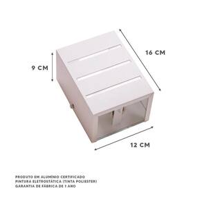 Especificações Técnicas: Marca: Ideallume Modelo: Ar1612 Fixação: Parede/Muro Tipo de uso: Interno e Externo Pintura: Eletrostática - Tinta: microtextura poliéster Cor: Branco Material Da Arandela: Alumínio e vidro. Voltagem Da Arandela: Bivolt 110/220v Soquete: G9 Halopin Medidas L x A x P : 12 x 09 x 16 cm Lâmpada: Utiliza 1 lâmpada Não inclusa