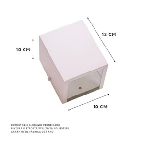 Especificações Técnicas: Marca: Ideallume Modelo: Ar1210 Fixação: Parede/Muro Tipo de uso: Interno e Externo Pintura: Eletrostática - Tinta: microtextura poliéster Cor: Branco Material Da Arandela: Alumínio e vidro. Voltagem Da Arandela: Bivolt 110/220v Soquete: G9 Halopin Medidas L x A x P : 12 x 10 x 10 cm Lâmpada: Utiliza 1 lâmpada Não inclusa