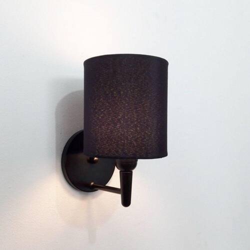 Arandela de Cabeceira e Camarim Cilíndrica Vivare Md-2009 Base Alumínio Preta Cúpula em Tecido