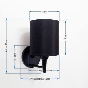 Arandela Cilíndrica Vivare Md-2009 Base Alumínio Preta Cúpula em Tecido