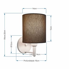 Arandela de parede Cilíndrica Md-2009 Base Branca Cúpula em Tecido 14x15cm Caqui - BivoltAs arandelas Lustres Vivare são elementos versáteis e elegantes que podem transformar qualquer ambiente em um espaço cheio de estilo. Seja para adicionar uma iluminação suave, destacar uma parede ou criar um efeito de luz diferenciado.Dimensão:Cúpula em Tecido: 14x15cm