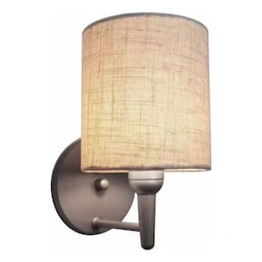 Arandela Cilindrica Md-2009 Base Cinza Cúpula Em Tecido 14x15cm Rustico Bege - Bivolt