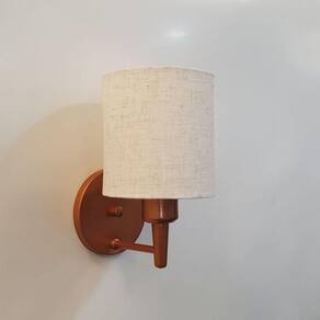 Arandela Cilíndrica Md-2009 Base Cobre Cúpula Em Tecido 14x15cm Rustico Bege - Bivolt