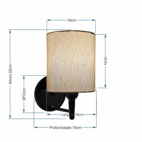 Arandela de parede Cilíndrica Md-2009 Base Preto Cúpula em Tecido 14x15cm Linho Bege - BivoltAs arandelas Lustres Vivare são elementos versáteis e elegantes que podem transformar qualquer ambiente em um espaço cheio de estilo. Seja para adicionar uma iluminação suave, destacar uma parede ou criar um efeito de luz diferenciado.Dimensão:Cúpula em Tecido: 14x15cm