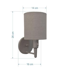 Arandela de parede Cilíndrica Md-2030 Cinza Com Liga e Desliga Cúpula Rustico Cinza - BivoltAs arandelas Lustres Vivare são elementos versáteis e elegantes que podem transformar qualquer ambiente em um espaço cheio de estilo. Seja para adicionar uma iluminação suave, destacar uma parede ou criar um efeito de luz diferenciado.Dimensão:Cúpula em Tecido: 14x15cm