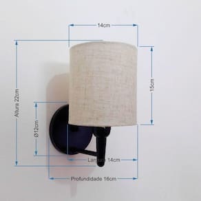 Arandela de parede Montada: Altura 22cm Largura 14cm Profundidade 16cm