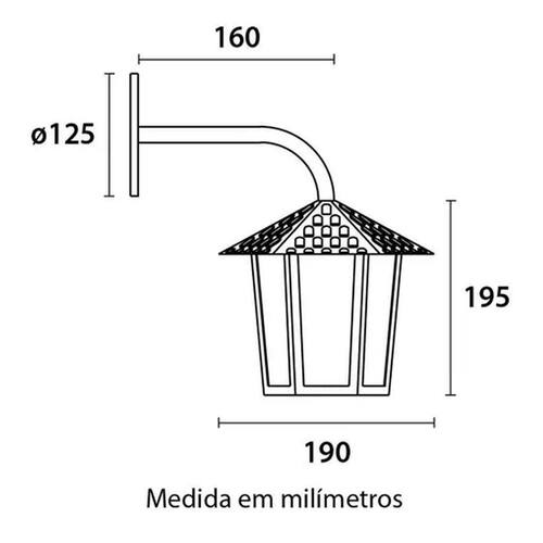 Especificações: Altura: 29cm Largura: 19cm Profundidade: 16cm Diametro da canopla: 12,5cm Material: aço fosfatizado e difusor de vidro Voltagem: bivolt Soquete: e27 Lâmpada: 01 a60 led 12w máxima conhecida como bulbo led